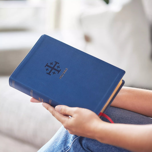 NKJV, End-of-Verse Reference Bible, Personal Size Large Print, Leathersoft, Blue, Red Letter, Comfort Print