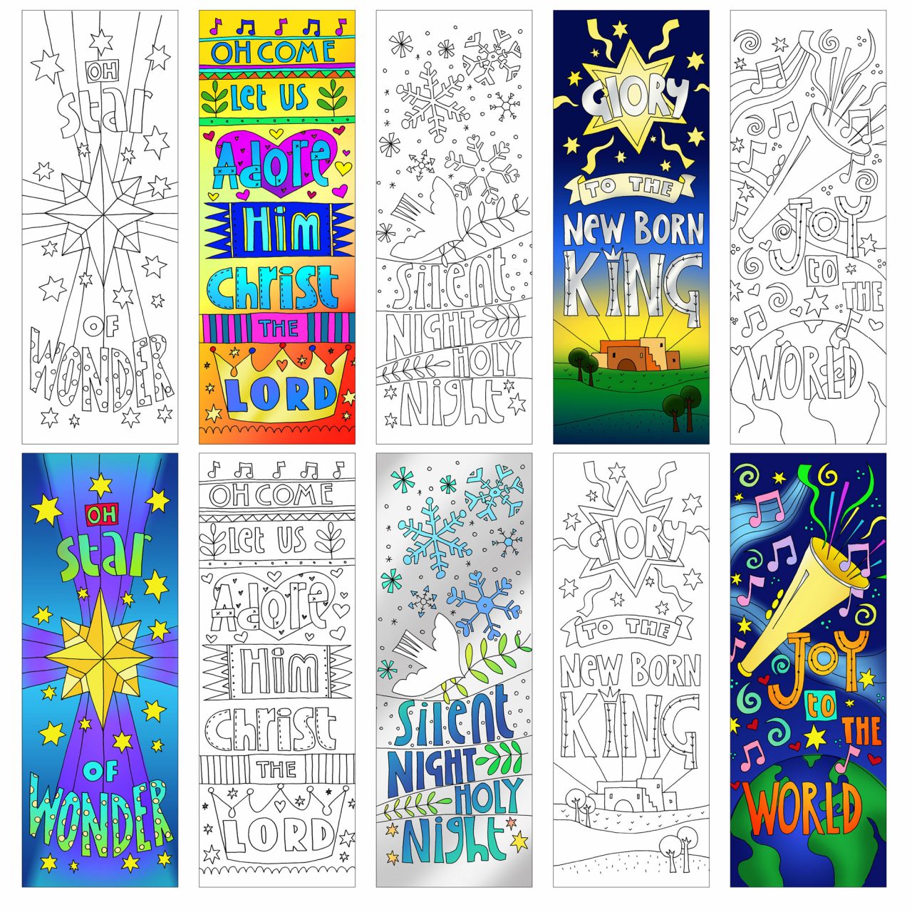 Pack of 10 Christmas colouring bookmarks, 2 of each of 5 designs,