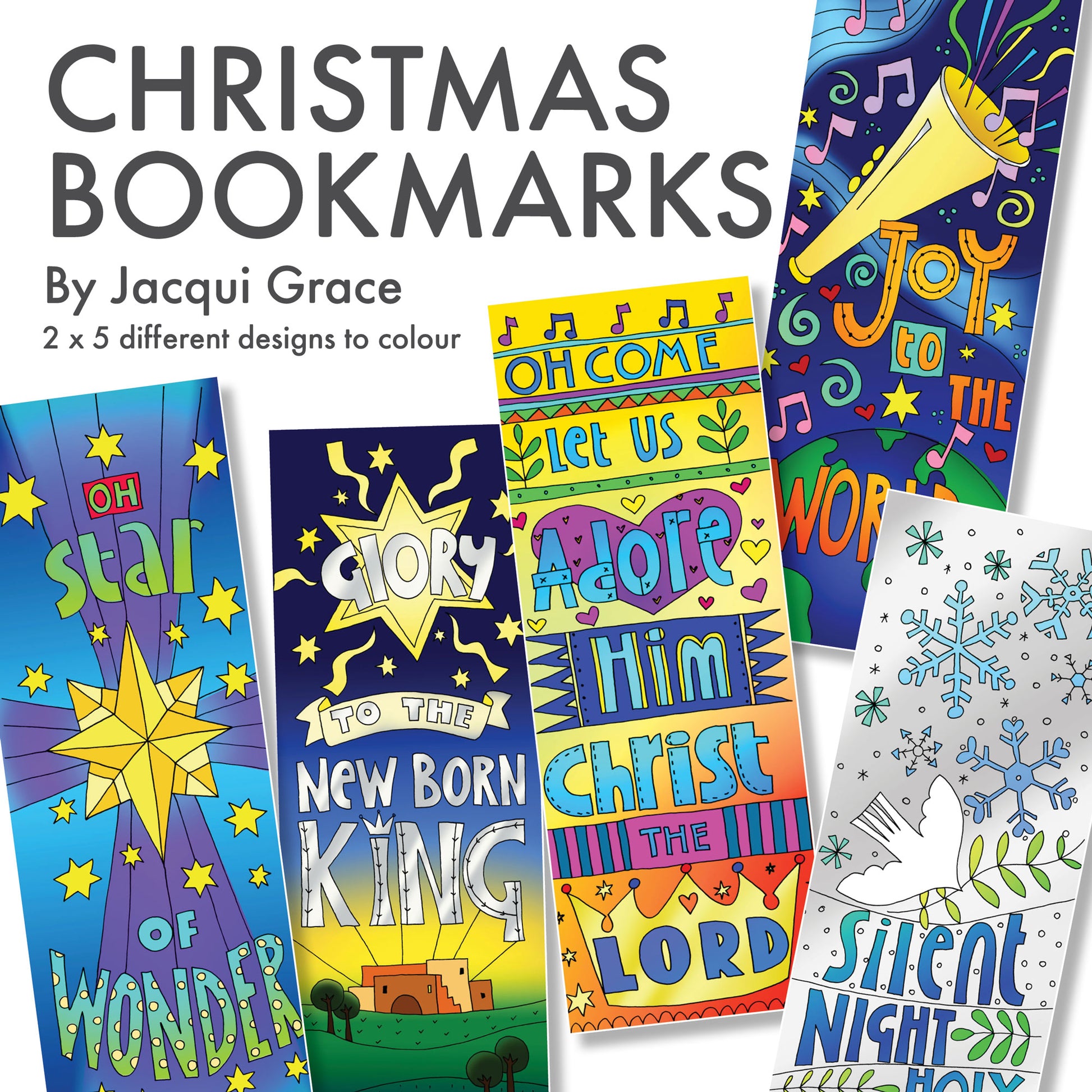 with Bible verse printed on reverse of each bookmark. Hand-drawn by artist Jacqui Grace.