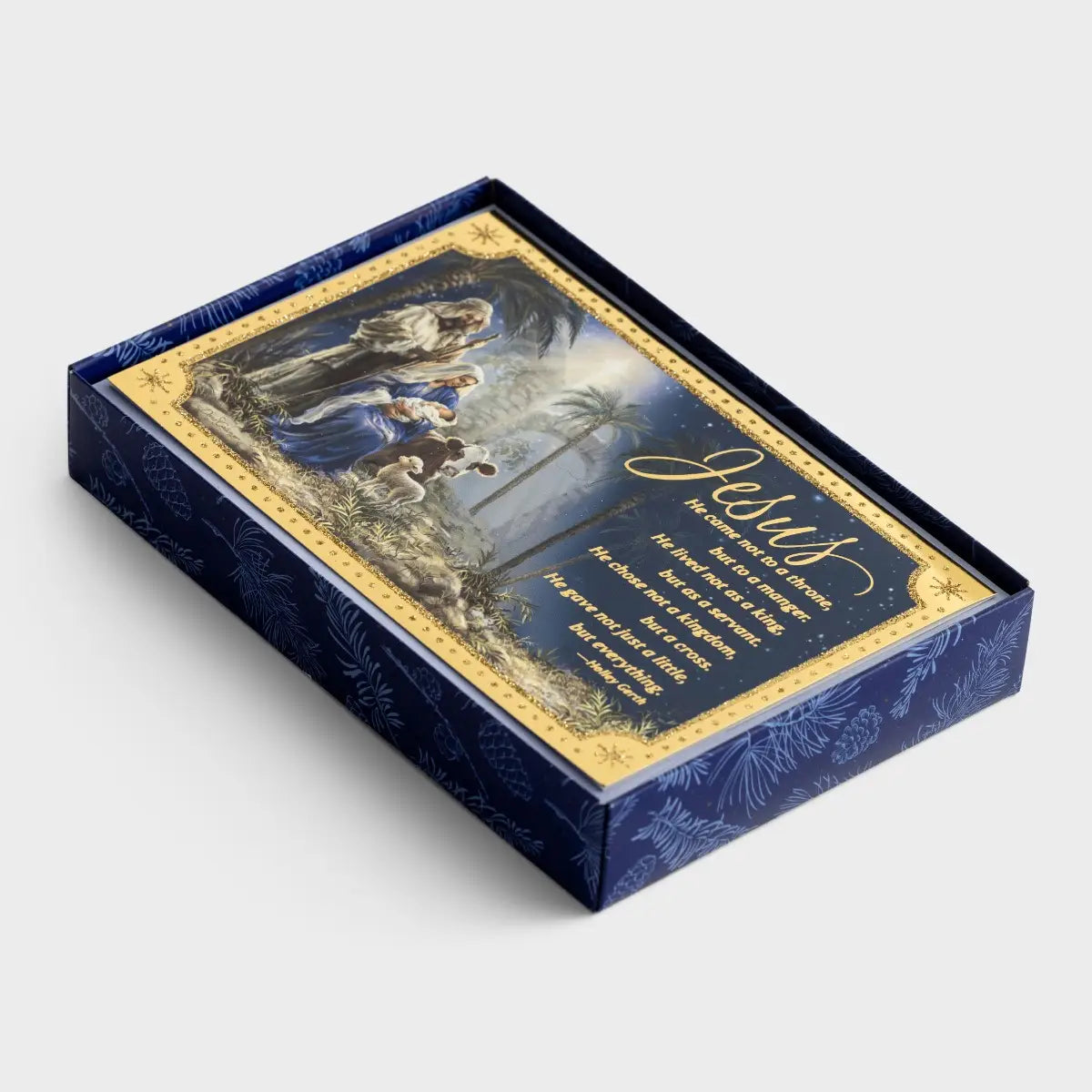 Send God's message of love this Christmas with these beautiful nativity inspired cards. Front: He came not to a throne, but to a manger. He lived not as a king, but as a servant. He chose not a kingdom, but a cross. He gave not just a little, but everything. -Holley Gerth Inside: May The Lord’s Great Love Bless You This Christmas Scripture: Christ loved us and gave Himself up for us. EPHESIANS 5:2 NIV