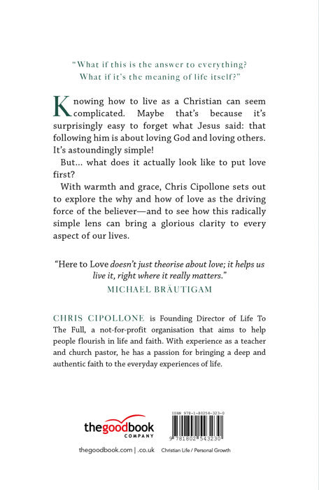 Here to Love will refocus your heart on the first principle of Christianity, giving you a simple and liberating vision for your relationships with others, your decision-making and your day-to-day worship of God.