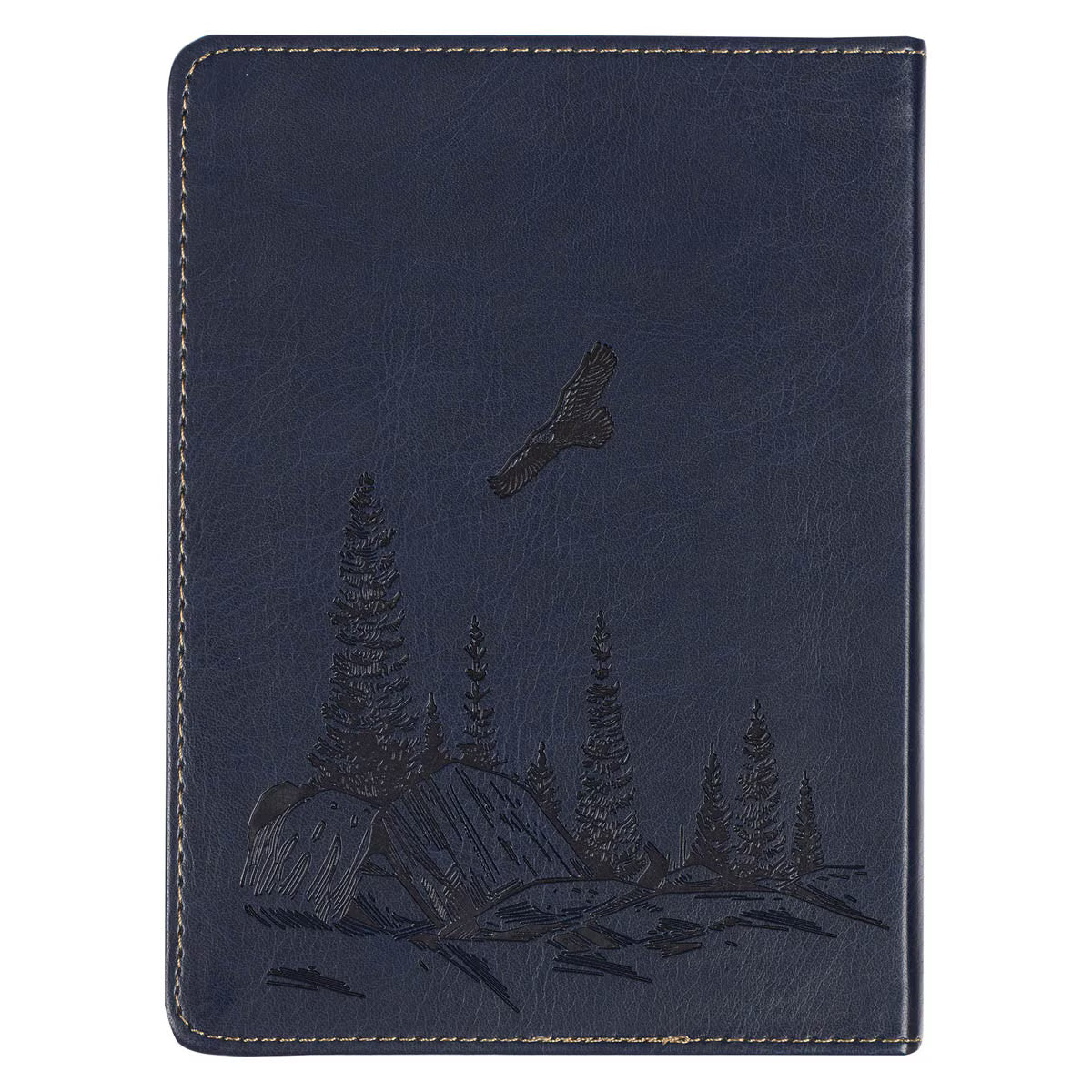 The Wings Like Eagles Navy Blue Handy-sized Faux Leather Journal will stay your mind on the mighty God we serve as you record your thoughts and prayers on its pages.